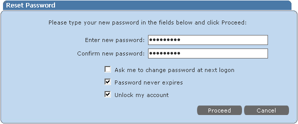 - Select Password never expires if you do not want to change it once in a while. The option is only available if enabled by administrator.
